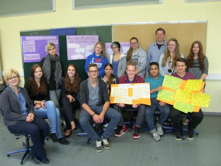 Am Donnerstag präsentierten die Jugendlichen einigen Mitgliedern des Generationenhilfevereins ihre Arbeitsergebnisse aus der Unterrichtseinheit. „80 % aller demenziell Erkrankten werden von Angehörigen zu Hause betreut und gepflegt“, lautete eine Kernaussage, „da kommen große Probleme auf die Angehörigen zu.“ Es folgten Beschreibungen der Herausforderungen, die die Familien zu bewältigen haben und der Hinweis, wie sie sich über das Krankheitsbild informieren können und wo es Hilfen für Betroffene und Angehörige gibt. Die Schüler gingen auf die Selbst- und Fremdwahrnehmung von Menschen mit Demenz ein und warben für eine verstehende Diagnositk und die Biographiearbeit in Pflegeeinrichtungen, um neben dem Wissen über das Krankheitsbild Verständnis für die Betroffenen aufzubringen. „Herausforderndes Verhalten von Menschen mit Demenz ist Ausdruck eines Bedürfnisses. Da ist Kreativität und Anstrengung von außen nötig, um den Bedürfnissen der Erkrankten auf die Spur zu kommen und ihnen gerecht zu werden“, führte eine Schülergruppe aus.